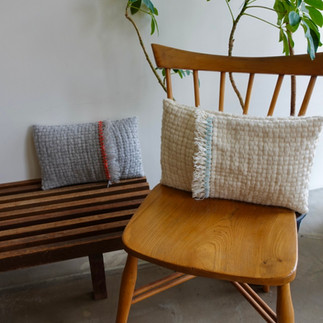 ノルウェー産羊の毛糸を使ったハックレース織りでクッションカバーを織ります。